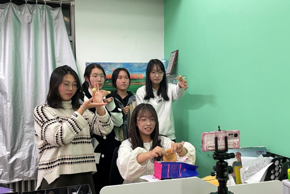 然而一时的挫败并没有消磨成员们把助农直播做好的决心,“我们一想到这是助农活动,就觉得不能轻易放弃,都站在这儿了,箭在弦上不发也得发。”梦想家队成员张静娅信誓旦旦地说。短暂地调整情绪后,13支队伍便紧锣密鼓地为直播“备战”。从直播时间的安排到直播任务的分配,从直播海报的张贴到直播环节的设计,再到直播前的宣传及直播可能出现问题的应对方案,13支队伍事无巨细,全方位为直播做好充足的准备。除此之外,为了售出更多的产品,团队之间还互相分享牛肉干、牛蹄筋、烧饼、爆浆奶球这些直播样品。“我看到了文法学子们干劲和学院的凝聚力。”太阳成集团tyc122ccvip2022级辅导员杨倩感慨地说。