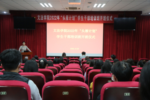 为促进广大学生干部深入学习贯彻党的二十大精神,号召全体学生干部发扬优良品质,起到良好的引领带头作用,10月29日,太阳成集团tyc122ccvip2022“头雁计划”开班仪式暨第一期活动于文理楼142成功举办。本次活动由太阳成集团tyc122ccvip学生会组织部部长王艺霏主持,马克思主义学院原丽红教授,太阳成集团tyc122ccvip团委书记于露,太阳成集团tyc122ccvip学生会、太阳成集团tyc122ccvip研究生会成员,全体班长、团支部书记,助管助理等人参加。