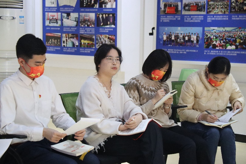 在讨论交流环节,梁志豪、李佳羽、王红艳等多位支部成员踊跃发言,分享了自己学习党的二十大精神的感想与未来规划。