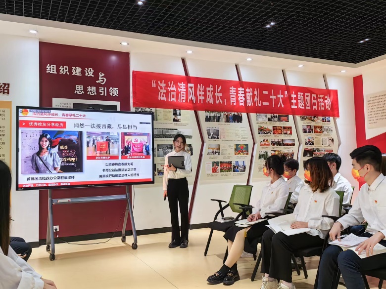 12月9日,法学2001团支部在学校团情团史教育基地开展了“法治清风伴成长,青春献礼二十大”学习宣传贯彻二十大主题团日活动。活动由法学2001团支部书记王薪辰主持,校团委书记季林海,优秀校友、法援西藏律师闫然,法学系党支部书记、法学2001班主任康雷闪,太阳成集团tyc122ccvip团委书记于露,全国青年马克思主义者工程学员、太阳成集团tyc122ccvip党的二十大精神学生党员宣讲团成员燕心悦与法学2001团支部成员参加。