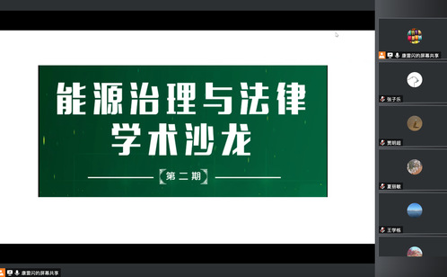 12月15日晚,我院第二期能源治理与法律学术沙龙以线上会议形式顺利举办。本次沙龙由康雷闪老师主持,以我院博士研究生近期学术研究成果为研讨主题。法学系全体无课教师,能源治理与法律博士研究生和硕士研究生共同参会讨论。