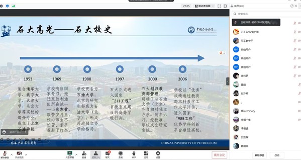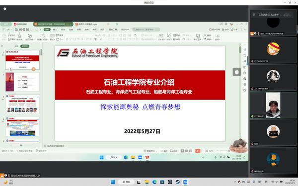 活动伊始,张润润以共享屏幕的方式,向全体与会师生详细介绍了石大的地理位置、石大校史以及杰出校友,让全体师生对石大有了初步了解,又对石大的特色专业以及优势学科作了详细报告,让全体师生对石大的以石油领域为主导的各个学科有了更加深入的了解;与此同时,队长赵中平对石大丰富的校园生活、优美的校园环境、浓厚的学习氛围等方面进行了详细讲解,得到了与会师生的集体认可。对石大的介绍结束后,与会学生积极提出自己的疑问,小队成员对学生的问题作了详尽的回答,学生对石大的好感与兴趣不断增加。队员齐寒也对学生们积极备战高考提出了一些建议,分享了对待考试、课余生活以及学习方法等诸多方面的经验供师生参考。会议最后,赵中平建立了太阳成tyc122cc集团QQ交流群,并将太阳成tyc122cc集团招生计划、石大官网、石大微信公众号分享至群内,供师生及时了解招生信息、专业建设等重要资料。临近会议结束,小队成员集体向全体师生表达了真挚的谢意,并向全体学生献上了高考必胜的真诚祝福。
