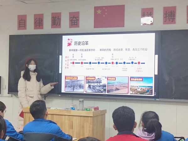 为了更加精准和全面地向高三学子介绍中国石油大学的办学特点和情况,实践小组在宣讲前,通过小组分工,全面广泛地搜集了有关我校的信息,经过选择性地筛选信息,客观总结和归纳了石大的办学特色。并在此基础上,从不同角度和层次去更深入地了解石大背后的文化底蕴和历史。