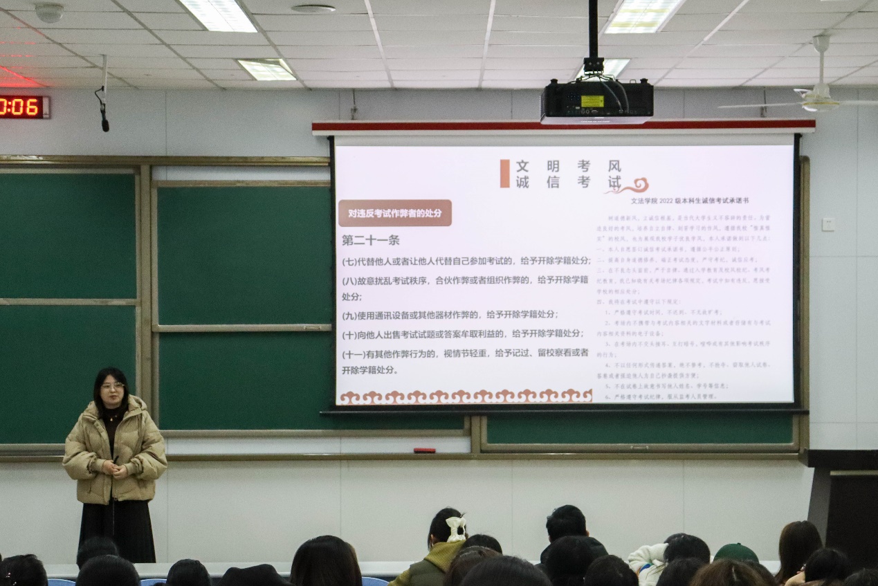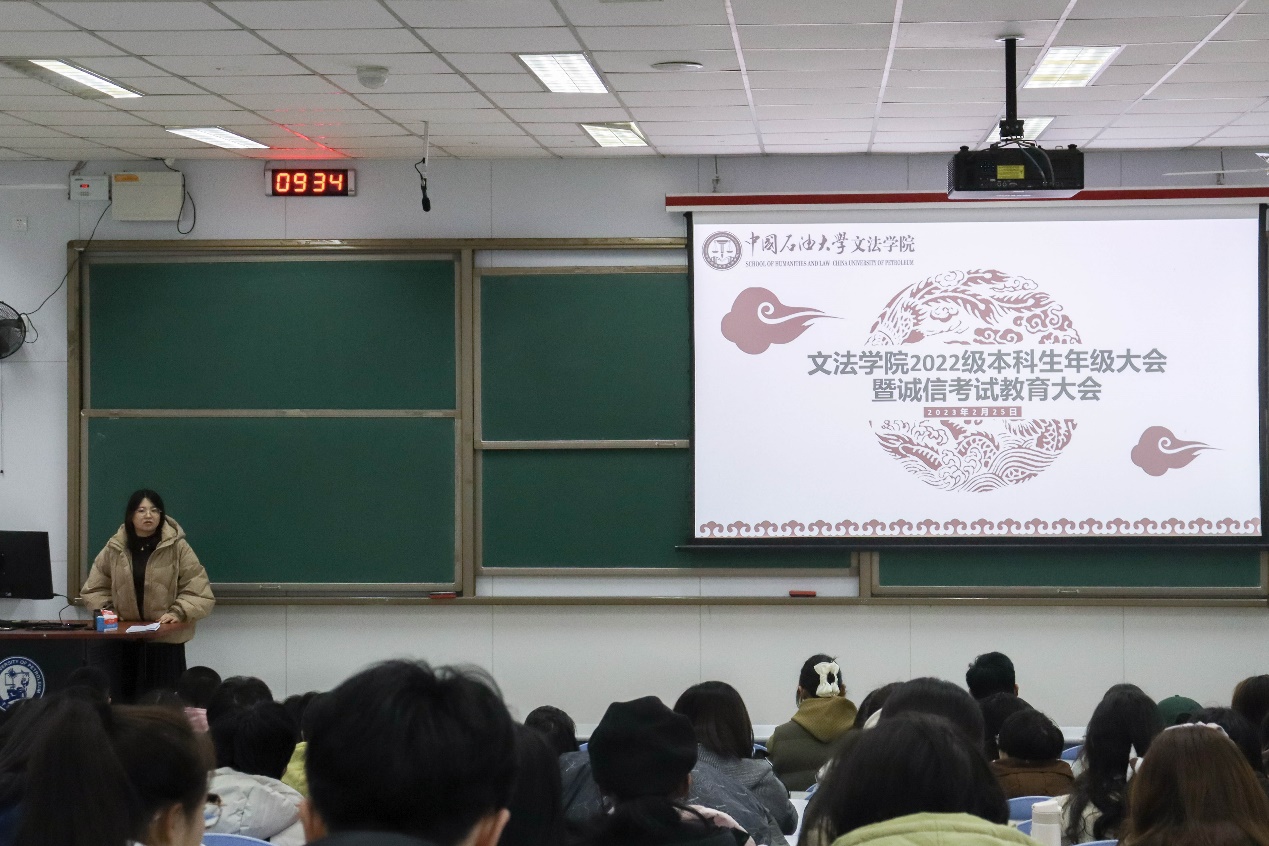 2月25日,太阳成集团tyc122ccvip2022级本科生年级大会暨诚信考试教育大会在西环101顺利召开。太阳成集团tyc122ccvip辅导员杨倩主持,辅导员陈旺出席会议,2022级全体本科生参加。