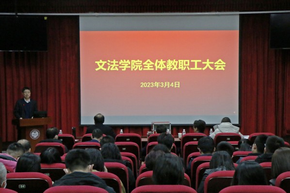 3月4日,学院召开新学期全体教职工大会,全面传达学习学校新学期工作会议王勇书记、郝芳校长讲话精神,进行工作总结和部署。会议由党委书记姚成郡主持。学院全体教职工参加会议。