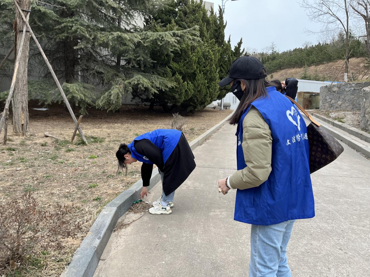 汉硕2101团支部志愿者在小黄山组织巡查的同时积极清扫环境卫生,支部成员在活动之余也领略了春日校园的美好风光。
