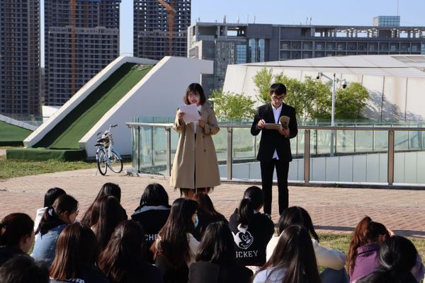 汉语2201团支部成员表演诗朗诵 刘佳怡摄