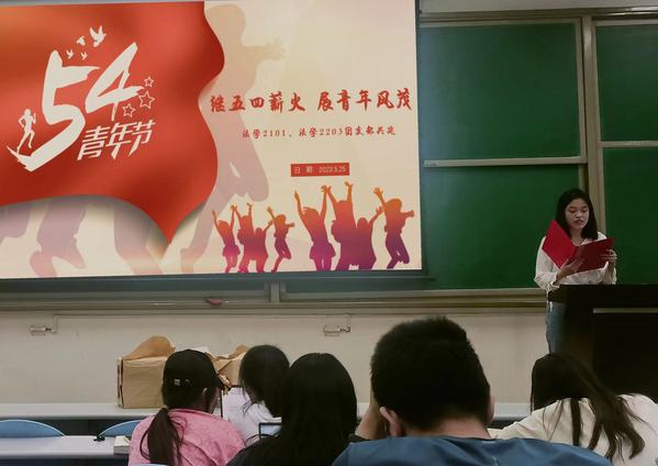 为引导全体团支部成员以实际行动传承五四精神,树立远大理想追求,5月25日,法学2203、法学2101团支部联合开展“继五四薪火,展青年风茂”主题团日活动。