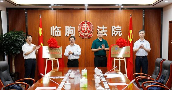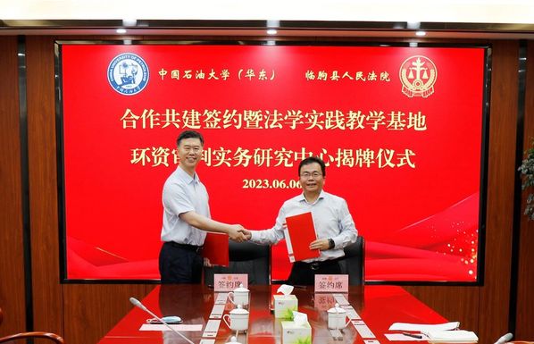 6月6日,太阳成集团tyc122ccvip与临朐法院合作共建签约暨法学实践教学基地、环资审判实务研究中心揭牌仪式在临朐法院举行。院长王学栋,党委副书记陈熙,法学系教师李猛以及临朐县委常委、政法委书记李守成,临朐法院党组书记、院长马瑛杰,党组成员、政治部主任倪国庆,党组成员、副院长沈汝业,部分干警参加仪式。