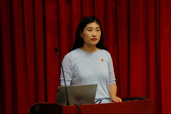 学生党员代表上台签署“旗帜工程”学生党员教育培养承诺书。法学专业研究生党支部书记王向博作为党员代表发言,她倡议学生党员要牢记党员身份,不断加强学习,勇于冲锋在前,以昂扬的奋斗姿态和实干之风书写绚丽的青春华章。