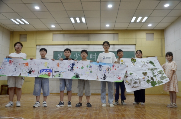 招生,是支教旅程中面临的第一个难关。炎炎烈日下,支教队的身影穿梭于村庄之间,前往阎点楼镇四个村庄开展招生宣传工作。其实,每个人内心中都有一个坚定的目标:招更多的孩子,星光再照得更远一些!支教队员经过自设精品课程、授课实践调试、撰写课表及整理等备置课程工作后,设计出了众多精彩丰富的课程和活动,诸如云旅中国带领乡村的孩子们在小小的教室里领略祖国的壮美山河、科学小实验教会孩子们发现科学的魅力并锻炼深思好奇的学习品质、编程课输送给孩子们新鲜精彩的互联网知识打开他们向往数码世界的大门、运动会培养孩子们团队协作和快乐运动的意识、百米画卷活动提供给孩子们描摹大美世界的宝贵机会等等。“通过开展这些活动与课程,我们不期望孩子们将来能牢记住多少枯燥的知识,而是要教会他们去乐观看待这个精彩的、充满爱的世界。”星光支教队队长杨兴潭说道。