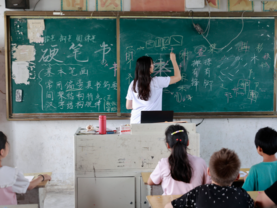 支教队员邢序涵教授硬笔书法课程 张雅慧摄