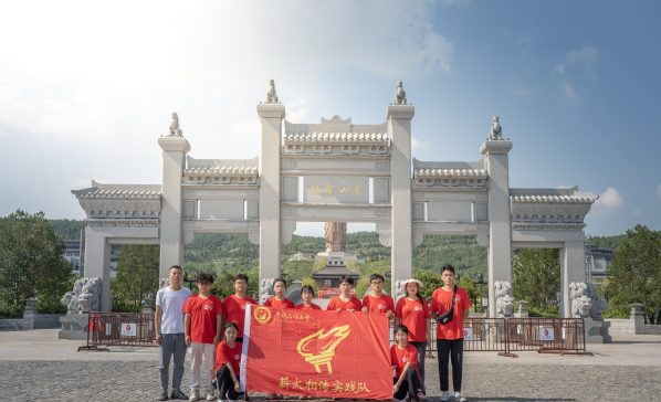 实践队员们在尼山圣境门口的合影 王一龙摄