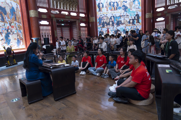 实践队员们听邱丽晔老师讲古琴 孙文靖摄