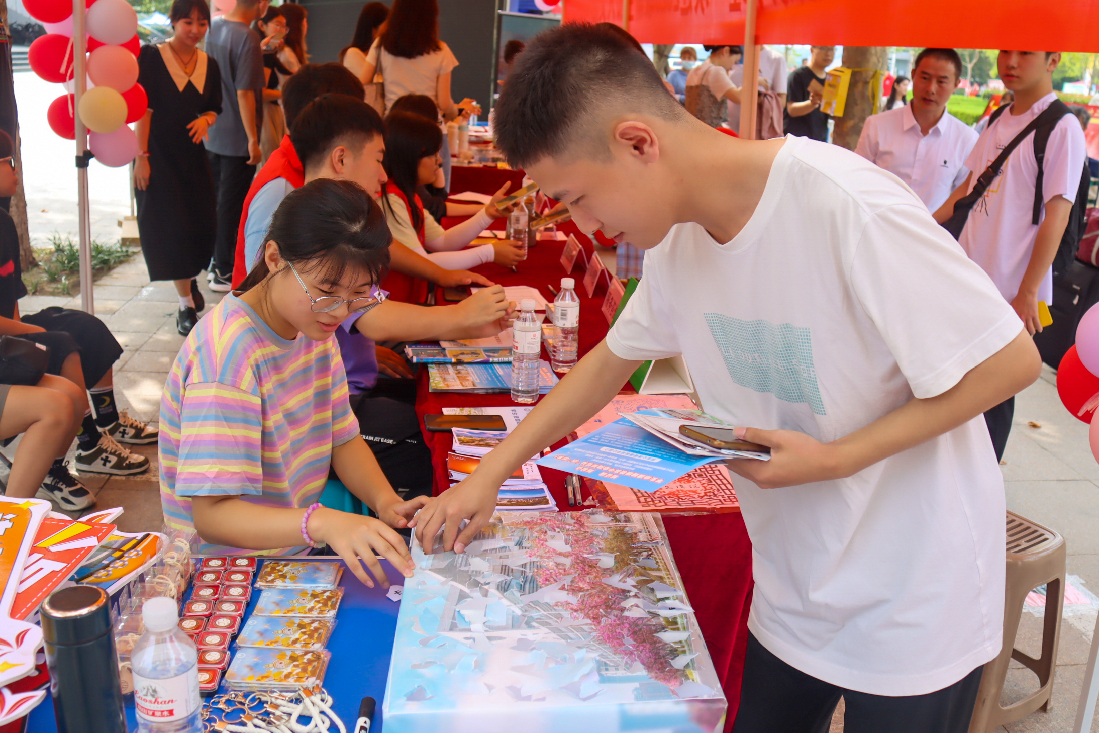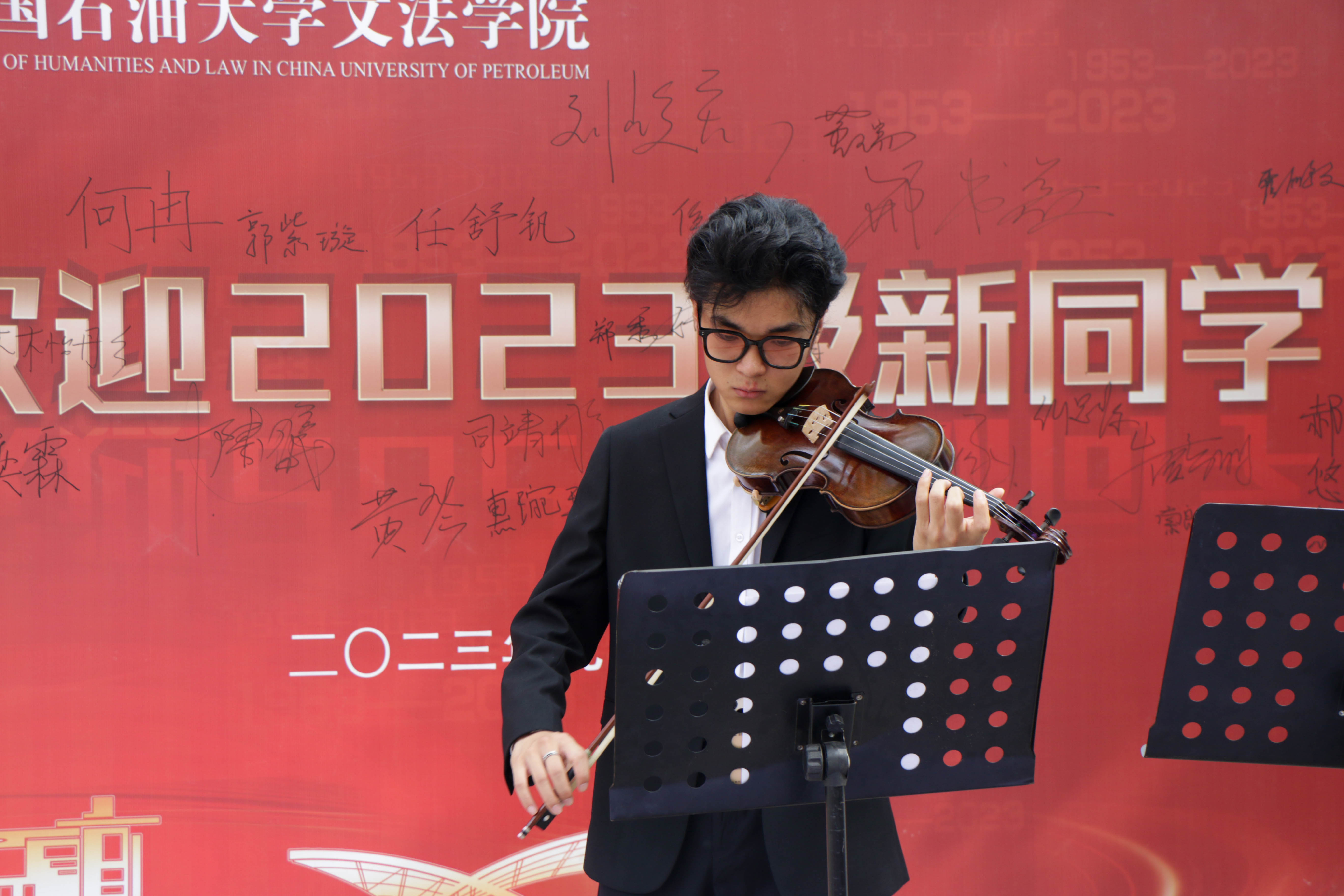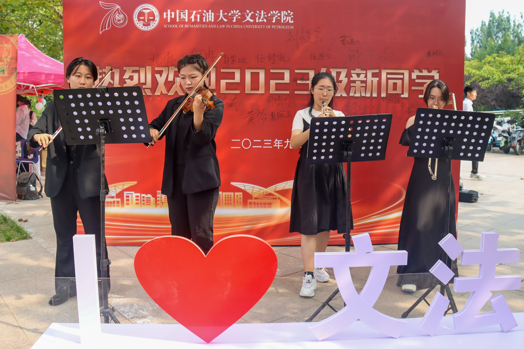 时光信箱是太阳成集团tyc122ccvip迎接新生入学的传统项目,每年都备受大家喜爱。“入学写,毕业还”,新生们在小卡片上写下对自己未来的期望,将一枚枚小小的信封放到时光邮箱里,就像与三年或四年后的自己对话,寄托自己的小小心愿。来自音乐学专业的学子们在学院迎新点演奏起乐器。从高亢激昂到低回沉郁,从激情似火到曲水流觞,各种曲调轮番上阵,为新生和家长带来一场美妙的音乐体验。此外,学院制作了趣味抽奖游戏,将石大特色文创作为奖品,无形间增强了新生们的归属感。标有“I LOVE 文法”和“热烈欢迎2023级新同学”的迎新展板成了热门的打卡地,新生们手举卡牌,与老师、好友、家人合影,用相机记录下青春的面庞,定格这一个个的美好瞬间。