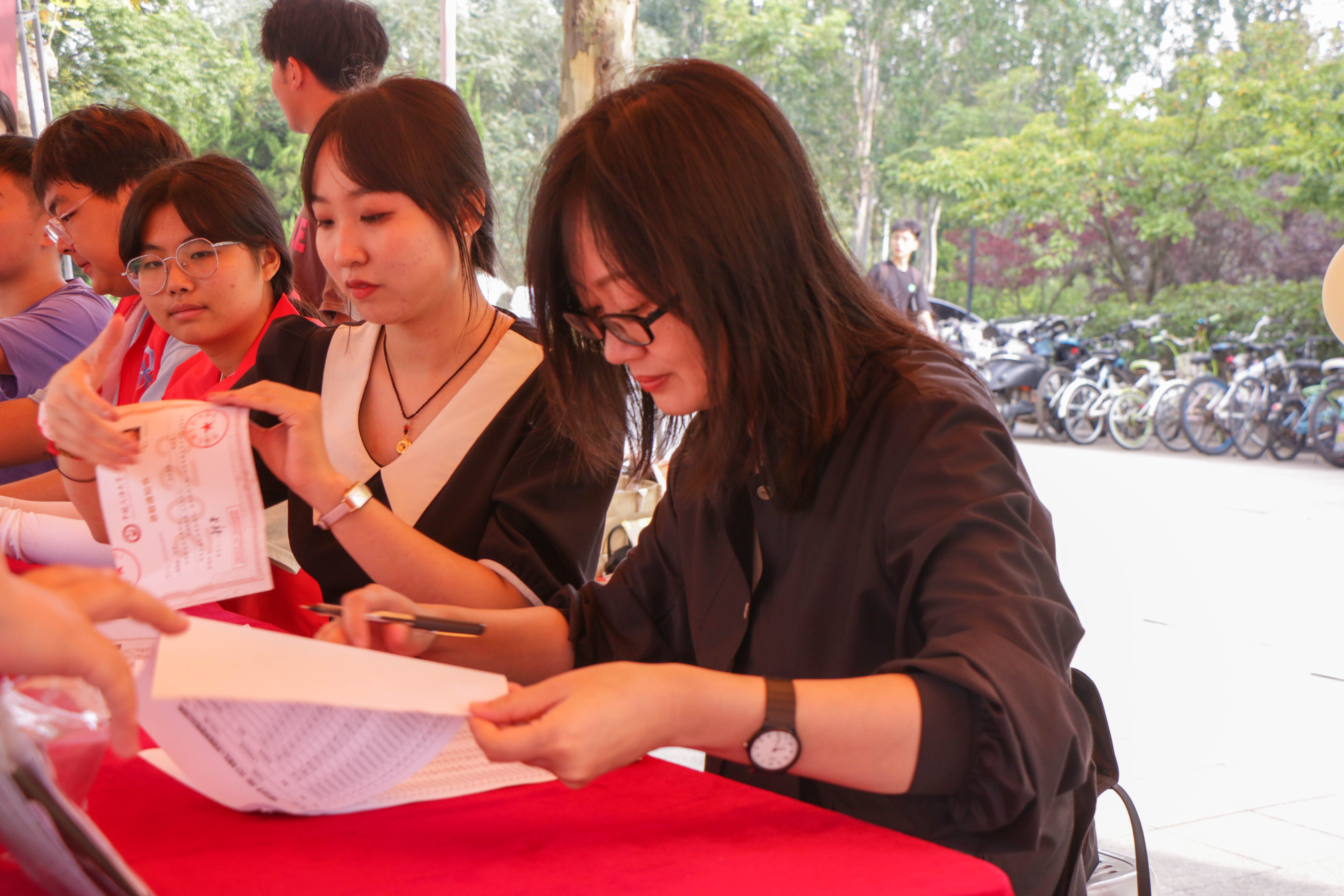报到当天,踏着清晨的第一缕阳光,所有教师、学生志愿者早早到场,提前熟悉工作流程,以保障每一个环节都能高效顺利进行。校门口太阳成集团tyc122ccvip志愿者协助新生到达迎新点、帮忙新生搬运行李。在迎新点,志愿者们热情服务,耐心解答,引导新生依次进行资质审查、身份核验、易班扫码、领取材料,轻松完成入学报到。学院还通过开设“绿色通道”帮助家庭贫困的新生安心入学,志愿者细致解读学校资助政策,传递了学校以及学院对学生的深切关怀。迎新现场朝气满满,热闹之余井然有序,令初入校园的大家倍感温暖。