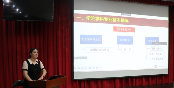 随后,辅导员于露从思想政治教育和日常事务管理的角度介绍了研究生管理模式、入党流程和奖助学金安排等研究生相关工作的具体实施细则,以及请销假的履行、国家助学贷款流程和学生纪律处分等相关规定,为同学们的研究生生活做了细致的指导。