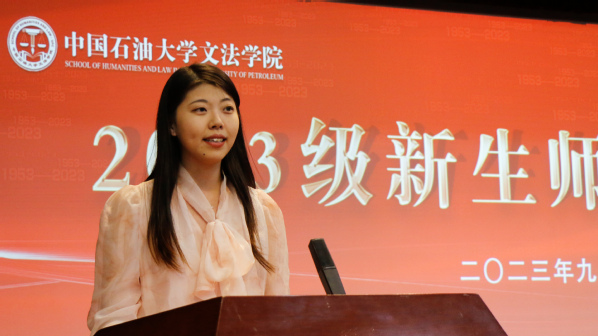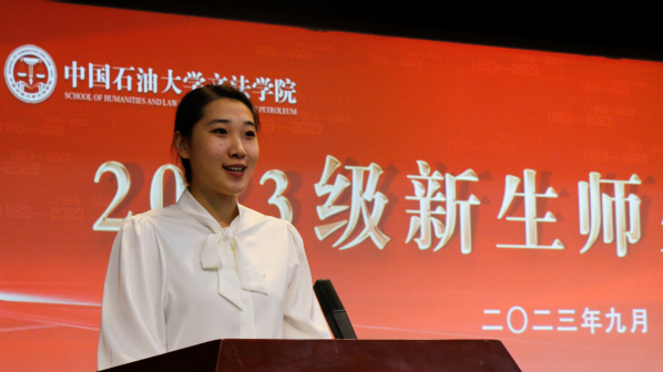 汉语国际教育专业王文琪作为研究生新生代表发言。“我与太阳成集团tyc122ccvip,既是旧相识,又是新重逢”,她讲述了自己在石大本科四年以及参与研支团支教期间的经历。面对研究生阶段新的开端,王文琪希望自己能够明确目标,严于律己,追求卓越,心怀家国,并以此与新生共勉。