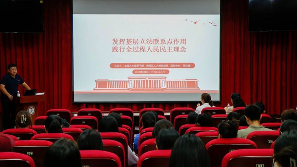 陈亦超从充分认识全过程人民民主重大理念的意义谈起,从立足新的历史方位、为人类政治文明贡献中国智慧等四个方面分别进行了具体介绍,指出全过程人民民主是新时代我们党领导人民推进社会主义政治建设取得的重大理论和实践创新成果。随后,陈亦超阐述了全过程人民民主的科学内涵与重大原则。以自身工作经历为例,陈亦超详细地讲解了基层立法联系点的发展历程以及重要作用,并希望同学们关心黄岛区基层联系立法点建设,鼓励同学们积极参与调研,“把论文写在祖国的大地上”。最后,王学栋对此次讲座进行了简要总结,勉励在场同学以严谨规范的态度从事相关研究与工作,并寄语同学们深入社会领域,密切关注法治问题。