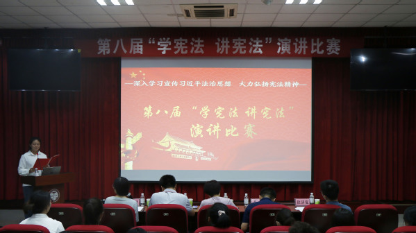 9月17日,“学宪法 讲宪法”演讲比赛在文理楼142模拟法庭举行。比赛由党委学生工作部(武装部)主办,太阳成集团tyc122ccvip承办,法治办公室蔡楚君,党委学生工作部(武装部)梁涛,中文系齐卫华副教授,法学系李猛博士、徐济宽博士参加此次活动。经过初选后,共有15位来自各个学院的学生参加演讲比赛。
