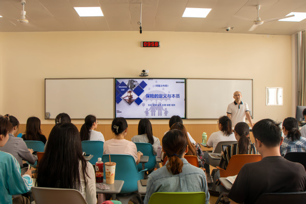 课堂上康雷闪老师首先用“提到‘保险’你最先想到什么?”这个问题引出术语“保险”,并对保险的四个方面——“危险之共同体”“补偿之需要性”“服务之有偿性”“独立之请求权”进行阐述。接下来,他针对“保险法中关于财产损失的赔付使用‘赔偿’是否合理”和“为什么要和关于人身伤害赔付时说的‘给付’区分开”两个问题进行了深入剖析。他指出“保险”之“险”有两层含义——一种是“可保风险”,保险可以消除风险;一种是“道德风险”,即保险可能会引起风险,提醒大家要合理利用保险,坚守道德底线。