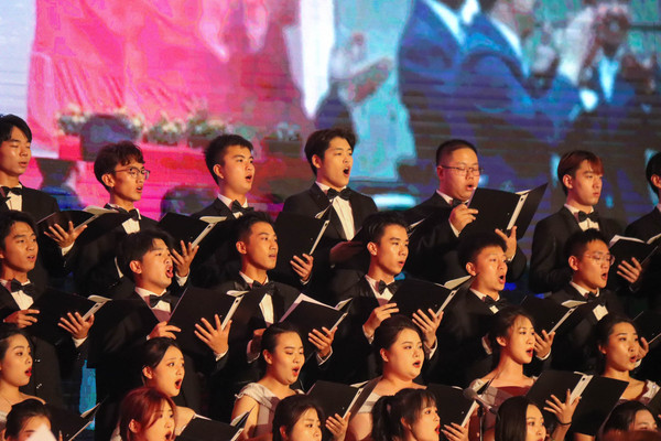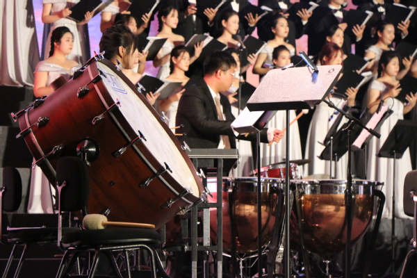 9月28日,学校建校70周年交响史诗音乐会《创造太阳》在体育馆隆重举行。校领导、来宾、校友及师生近4000人观看演出。