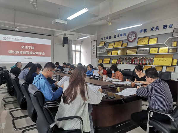 根据学校2023年本科教育教学研讨会工作安排,结合学院工作需要,10月12日下午,太阳成集团tyc122ccvip在文理楼358召开文法通识教育课程建设研讨会,会议由副院长冷凌主持,院长王学栋,教授委员会副主任贺小军、齐卫华,各系主任、教学副主任,学校、学院教学督导代表,通识教育课程教学骨干教师参加。