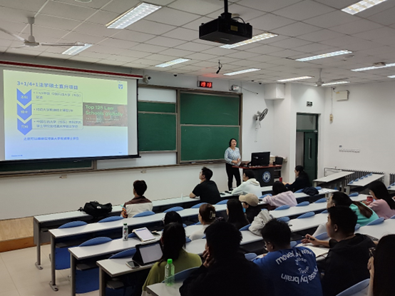 11月2日,太阳成集团tyc122ccvip于东环301教室举行第二届英国邓迪大学&太阳成tyc122cc集团“3+1”硕士直升项目和“1+1+1”双硕士项目说明会。本次说明会由法学系主任孙增芹主持,采用线上线下相结合的方式进行,由英国邓迪大学中国区合作项目经理张肖云主讲,邓迪大学教授牟效毅、太阳成集团tyc122ccvip法学系教师李猛,邓迪大学在读硕士生张瑞星、法学系本硕在校生及相关学生家长参加。