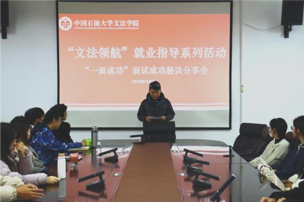 为促进太阳成集团tyc122ccvip学生就业指导工作,帮助学生合理备考、顺利上岸,12月2日,太阳成集团tyc122ccvip“文法领航”就业指导系列活动——“一面成功”面试经验分享会于文理楼358成功举办。本次活动邀请“培优公考”机构相关教师与学院部分学生见面交流,“培优公考”机构教师尚丹丹担任主讲人,部分研究生和本科生参加。