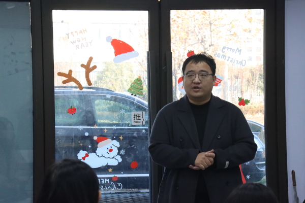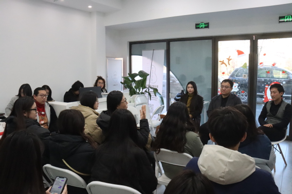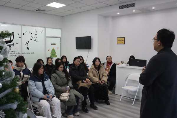 王少昊介绍了公司的基本情况与发展历程。他留学回国后与友人创办留白音乐教育中心,目前有东营和青岛高新区两个校区,共有学生二百余名。琴房教室配置充足,有弦乐、钢琴、流行音乐、声乐、民乐、打击乐教学教室及相关的任课老师,为学生的音乐学习做好充分的准备。当谈到关于就业、考研、出国、创业等有关未来发展的相关问题时,王少昊结合自身经历一一介绍了它们的利与弊。以创业为例,他指出首先要确定的是选址和学生群体的受众,除此之外,还要保证工作时间,校区的运营,相关专业的学科计划以及学生的档案信息等。王少昊鼓励学生充分发挥专业所长,增加教学经验,为后期就业打下一定的基础。