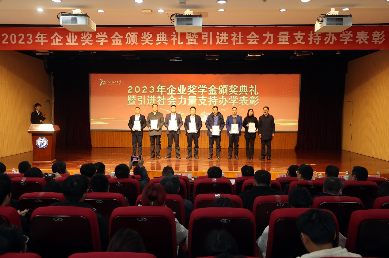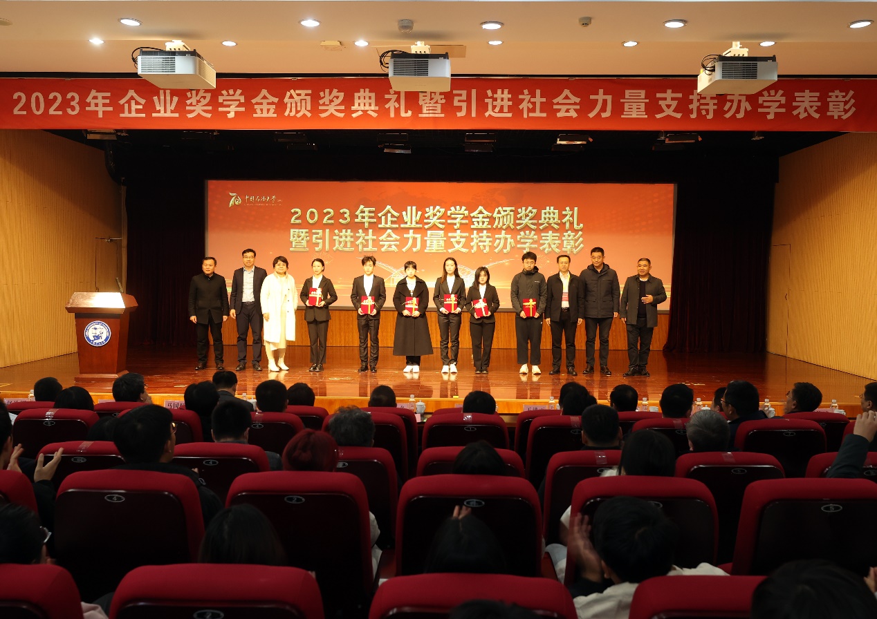 12月1日,中国石油大学“凝聚爱心助成才 校企携手向未来”2023年企业奖学金颁奖典礼暨引进社会力量支持办学表彰大会在逸夫礼堂举行。学校党委书记王勇,副校长张玲玲,党委副书记、纪委书记吴强明,党委副书记马国顺,党委常委张卫东、赵放辉,校长助理于连栋、王效美出席典礼。