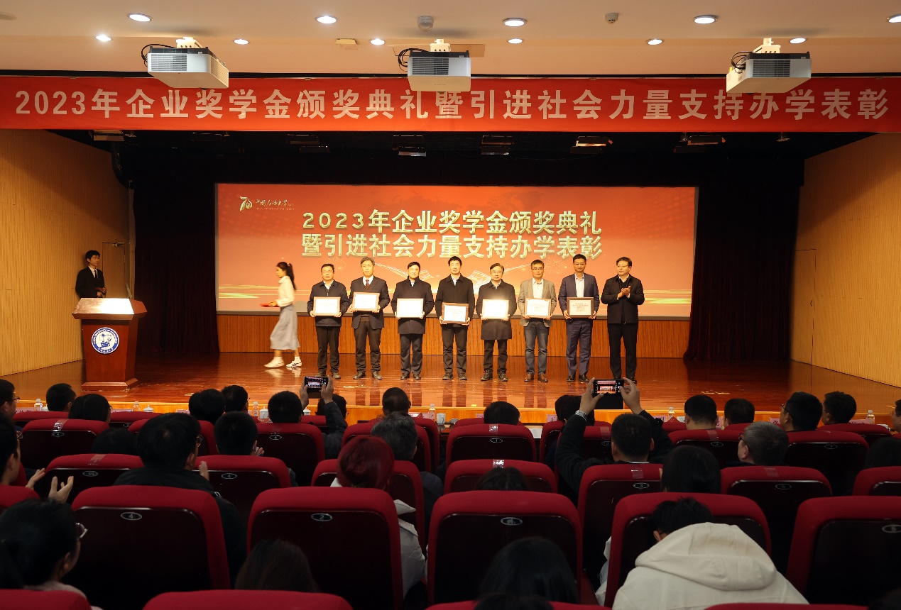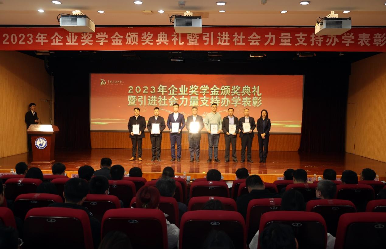 党委副书记马国顺宣读奖助学金、奖教金表彰文件。王聚军、周灿、同伟、刘凤玲代表捐资设奖单位,共同为获得“德士力文艺奖”“锦晔泰程头雁奖学金”“中永励志奖学金”和“青胜禾美育奖学金”的学生代表颁奖。