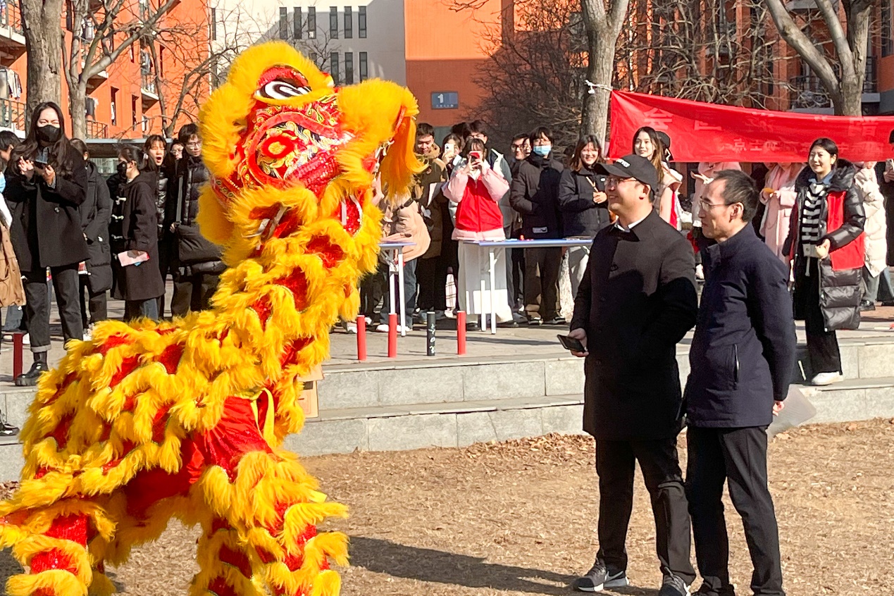 在“灯谜迎春”展区,师生们于汉字间拾趣。“蜜食荟萃,春意可尝”,冬日蜜食摊位前充满欢声笑语,作为冬日特色美食的冰糖葫芦和糖画,为师生们在寒冬中带来独一份的甜蜜与美好。游戏区的活动也热闹非凡,学生们钟情木射,攻守进退中大家情绪高涨;投壶锤丸,荟萃广场上回荡着师生们的加油喝彩声。在“墨香含韵,情寄暖冬”展区,师生们挥毫泼墨,书写暖冬心意,传达美好愿望。在“锣鼓声声除旧岁,招财纳福醒狮来”活动区,师生们亲自制作“醒狮挂件”,活灵活现的醒狮为冬日增加了一抹亮丽的色彩。