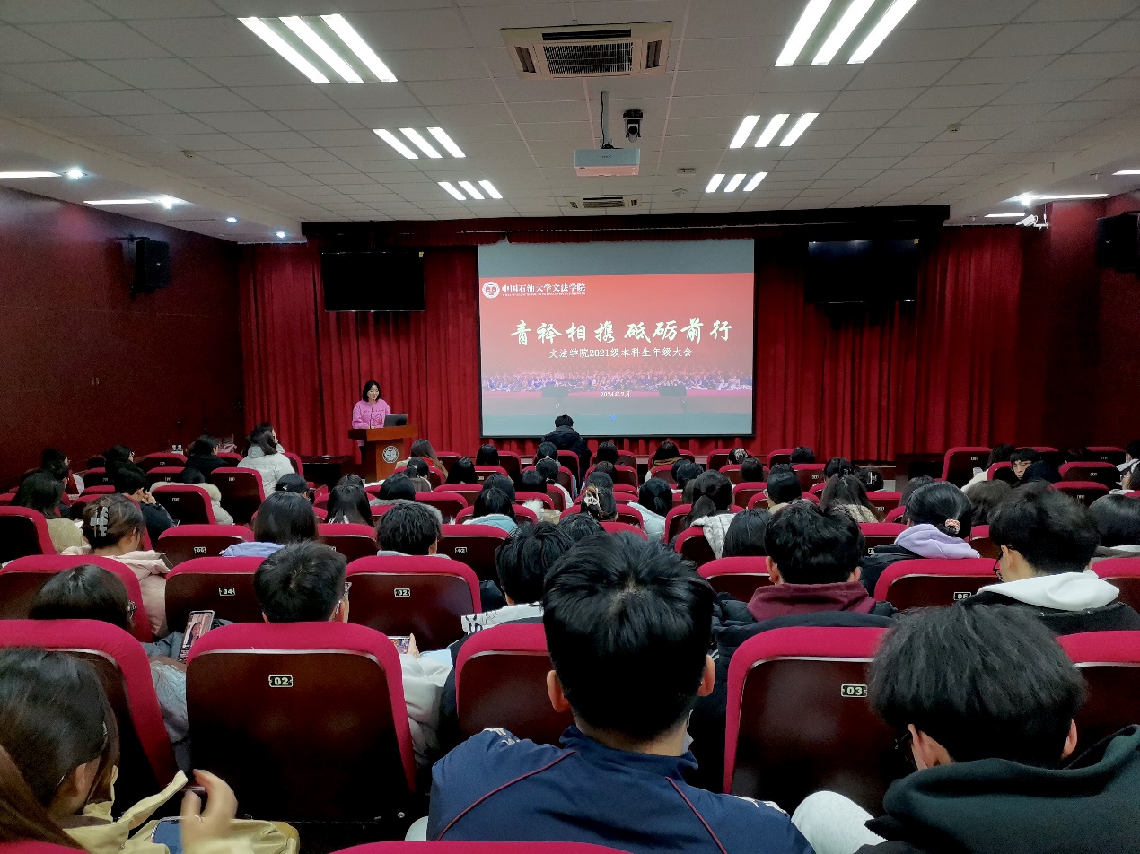 2月29日晚7点,太阳成集团tyc122ccvip2021级本科生年级大会在文理楼142顺利召开。本次会议以“青衿相携,砥砺前行”为主题,由太阳成集团tyc122ccvip辅导员李甜雨主持,辅导员赵延升及2021级全体本科生参会。