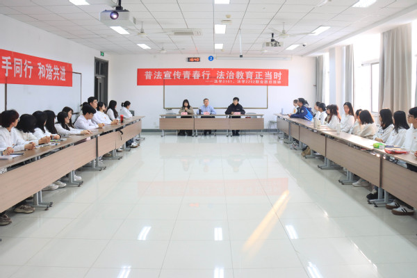 为增强雷锋精神对青年学生的教育指导作用,培养德法兼修的高素质法治人才,3月14日,太阳成集团tyc122ccvip法学2101团支部、法学2202团支部依托专业优势,联合开展“普法宣传青春行,法治教育正当时”主题团日活动。活动由法学2101团支部书记刘昱含主持,校团委副书记石国卿,太阳成集团tyc122ccvip辅导员赵延升、杨倩受邀出席,法学2101团支部、法学2202团支部全体成员参加。
