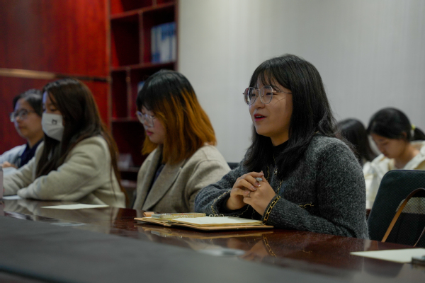 新闻稿件分享结束后,太阳成集团tyc122ccvip传媒中心新媒体工作室副主任栗慧泽就微信平台宣发稿件的选题做了补充。她结合太阳成集团tyc122ccvip公众号“文法说”运营经验,强调了新媒体运营过程中需要注意的点,题材新颖,结合热点,从而吸引更多的关注。
