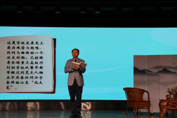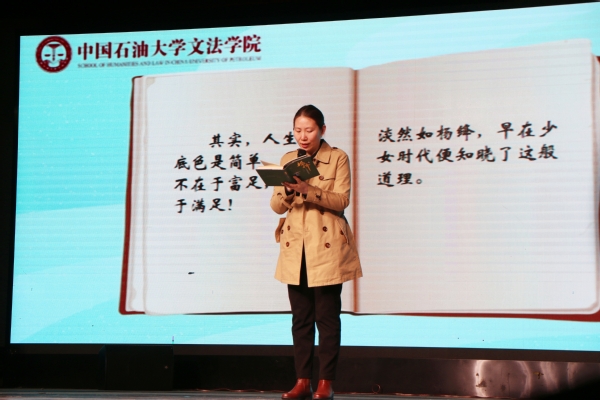 本次朗读大会以“访谈+朗读”的形式进行。而故事,就从一处地标性建筑——中国石油大学校史馆开始。习近平新时代中国特色社会主义思想概论教研室教师、副研究员、中国石油大学档案馆馆长刘积舜生动讲述了我校71年来与共和国发展共命运、与祖国石油工业同呼吸、与石油高等教育共奋进的光辉历程。一部《中国石油大学校史》,见证了学校的初心,校史是精神和信仰的传承,是初心和使命的担当,更是“立心,立根,立魂”的无价之宝。刘积舜将一代一代石大人以石大精神为轴心绘就的石大印记展现在与会师生面前。