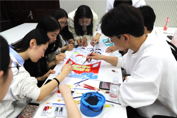 活动现场支部成员共绘海报 穆妮热摄