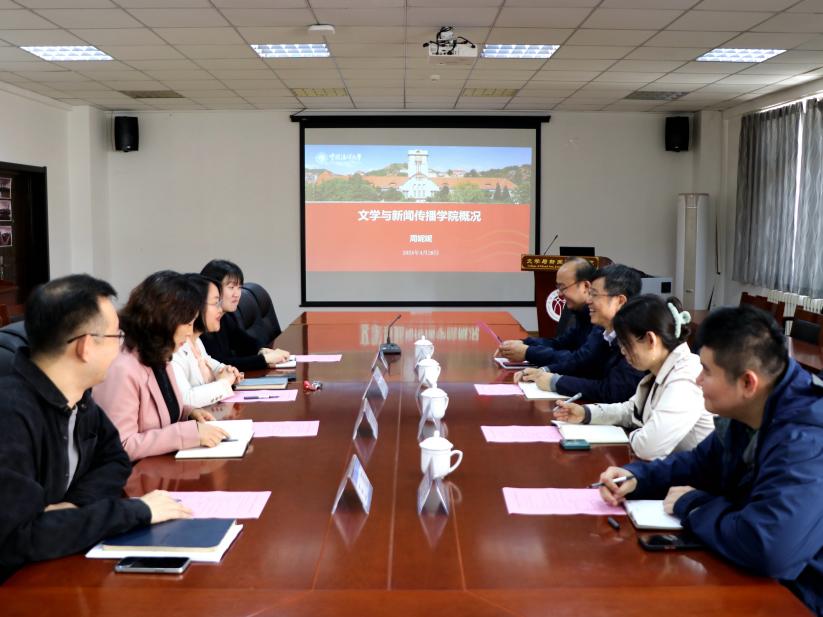 4月28日,学院党委书记姚成郡、副院长冷凌和党委副书记陈熙等一行赴中国海洋大学法学院、文学与新闻传播学院走访调研。