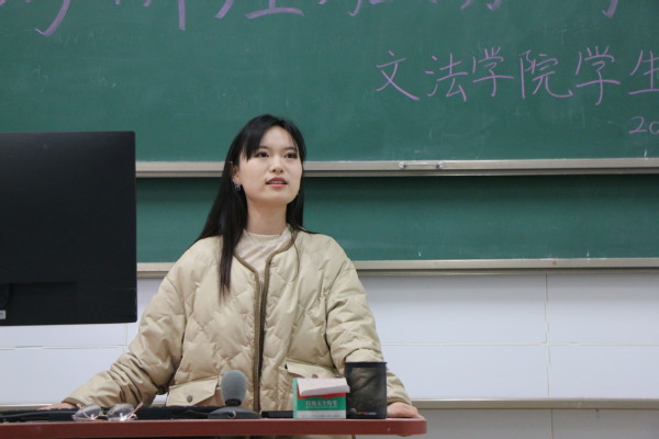 最后一位分享者来自汉语言2001班蔡馨蝶,她成功考入四川大学。蔡馨蝶同样以自身经历为例分享自己的考研之路。她认为考研一定要树立明确的目标、从一而终,要心理层面的极度渴望才能撑过考研的漫长周期。她分享了自己选择四川大学的原因,以此为例强调在客观方面人数、初试题、报录比等与主观方面实力、效率、喜好等综合考量的重要性。对于专业课的准备,她也作出详细解答。另外,她强调“考研是一个马拉松的过程”,备考过程中要多关注心理、自制力、身体健康等方面的问题,良好的心理状态和身体状态是基础。