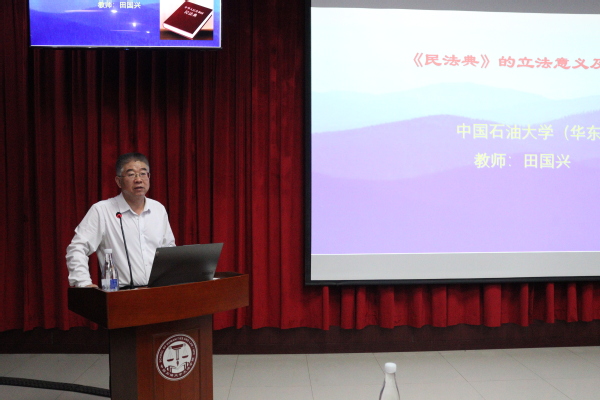 讲座开始,田老师结合大陆法系的传统与中华民族的传统两个层面分析民法沿革的脉络,强调我国民法典的编写汲取了众多优秀外国法典和中国传统成文法的精华。同时,田老师以拆迁为例,用风趣幽默的语言具体介绍《民法典》在现实生活中的应用。他指出:“民法作为权利法,是唯一全面规定私权的法律。而权利必须明示,人们方知如何运用其救济自身权利。”接下来,田老师介绍到我国《民法典》经历了漫长波折的立法过程,最终的《民法典》充分体现了中国特色、实践特色、时代特色。因此,《民法典》的立法成功具有里程碑式重大意义。