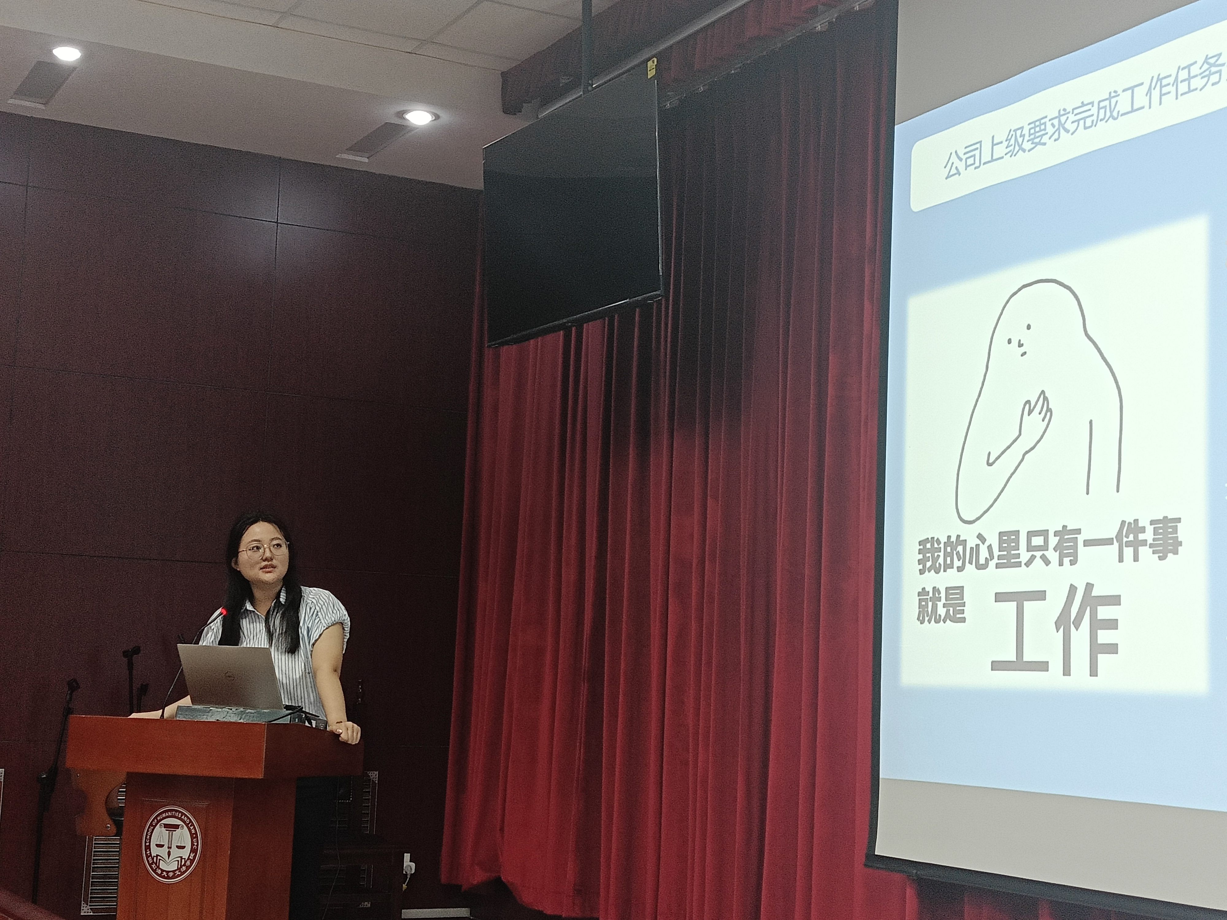 第二部分,宣讲团成员向同学们介绍了劳动者的权利,鉴于时间关系,重点讲述了平等就业的权利、取得劳动报酬的权利、休息休假的权利。在帮助同学们了解自身合法权益的同时,宣讲团成员也重点提示同学们,在就业过程中并非遇见任何事情都要通过法律途径进行对抗,要结合自身的实际情况、结合对这份工作的具体考量进行综合分析,切勿莽撞行事。