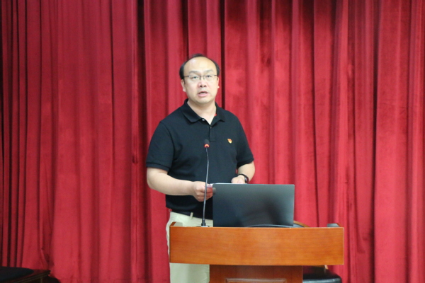 学院党委副书记陈熙讲话。他带领在场全体党员回望中国共产党的光辉历史,总结中国共产党人精神谱系的深刻内涵,以史为鉴,立足新时代。“当前,我们正处于百年未有之大变局,新时代大学生党员要紧密团结在以习近平同志为核心的党中央的周围,增强党性修养,不断提升自身素质和能力”,激励着在场每一名党员不忘筑牢信仰根基,牢记中华民族伟大复兴使命。
