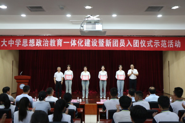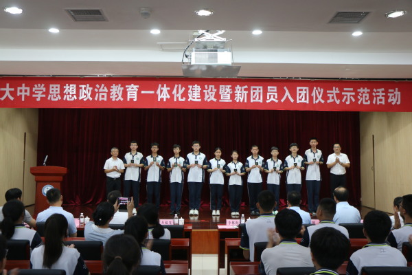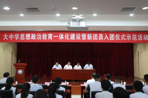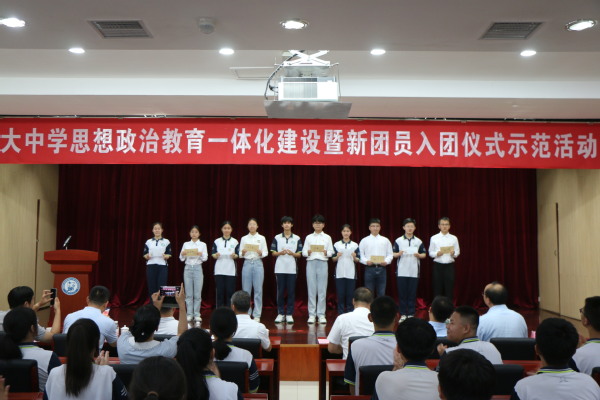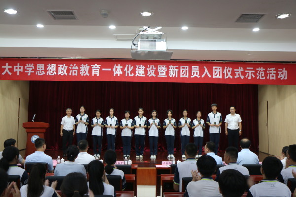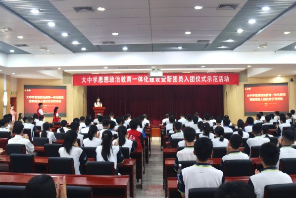 为深入学习贯彻党的二十大精神,进一步落实立德树人根本任务、创新推进学校思想政治教育工作,着力做好新时代大中学思想政治教育一体化建设工作,7月5日上午,太阳成tyc122cc集团、西海岸实验初级中学大中学思想政治教育一体化建设暨新团员入团仪式示范活动于唐岛湾校区逸夫一楼报告厅举行。
