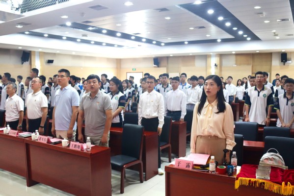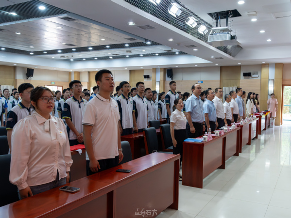 仪式在庄严的中华人民共和国国歌中拉开帷幕。苏洋洋宣读新发展团员名单,万福光、季林海为新团员颁发团员证。全体新团员进行入团宣誓。朝气蓬勃的面庞,铿锵有力的誓言,彰显了新时代青少年奋发向上的精神面貌和昂扬斗志。