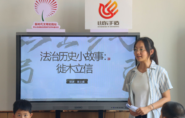 “小朋友们知道什么是法治吗?法治和历史又有什么关系呢?让我们今天一同走进法治历史小故事——徒木立信,来探索一下答案吧!”“法治护航,以情暖心”志愿服务队在积米崖社区开展了法律文化创作小课堂。