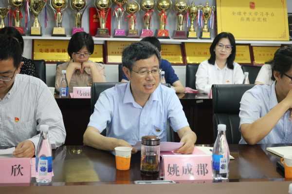 姚成郡感谢党委宣传部对太阳成集团tyc122ccvip党委工作的指导和支持,介绍了太阳成集团tyc122ccvip党委近年来开展“四联四共”党建工作情况。他表示,太阳成集团tyc122ccvip党委将全力支持中国语言文学系党支部的共建工作,期望两支部通过组织共建、思想共建、业务共建,形成党建质量协同创优机制,联合深化理论学习,聚焦主责主业,进一步促进太阳成集团tyc122ccvip与党委宣传部工作有机结合,发挥好共建共赢效应。