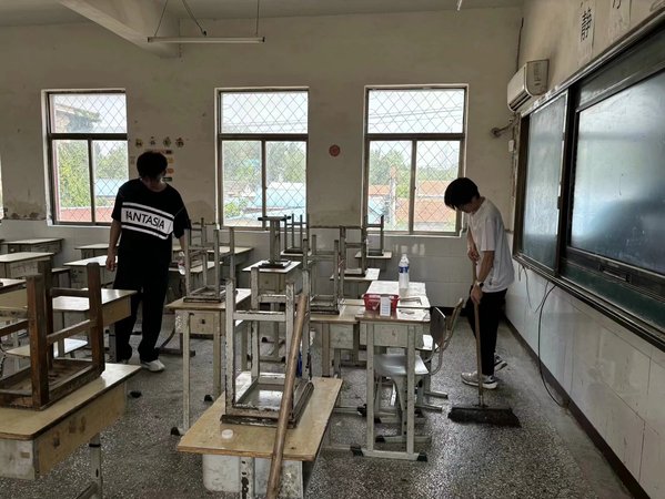 星光支教队在育英中学教室内清扫教室 吴浩东摄