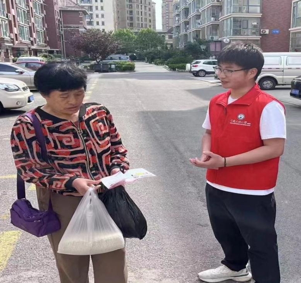在拜访完栾老师后,实践队在芝罘区只楚春晟小区进行了普法宣传,走访与调研了当地人民对于剪纸艺术的认识和对非遗法律知识的了解程度,并选择与剪纸艺术相结合的法律知识点向当地人民进行了科普。