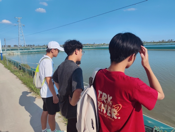 随后,实践队员们跟随讲解员的脚步,深入到大闸蟹养殖池塘的腹地。这里,碧水环绕,芦苇摇曳,生态和谐,正是黄河口大闸蟹赖以生存的天然乐园。队员们近距离观察着这些水中精灵的生活状态,感受着它们在这片肥沃水域中自由生长、茁壮成长的勃勃生机。